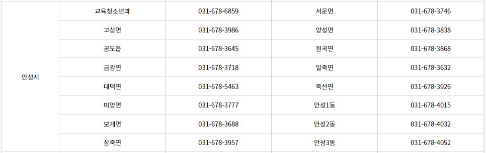 각 시군별 담당부서 및 전화번호도 아래와 같이 안내드리오니 궁금한 점이 있으신 분들은 전화로 문의해보세요!