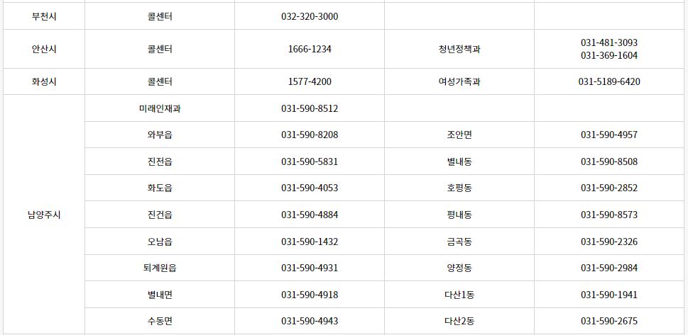 각 시군별 담당부서 및 전화번호도 아래와 같이 안내드리오니 궁금한 점이 있으신 분들은 전화로 문의해보세요!