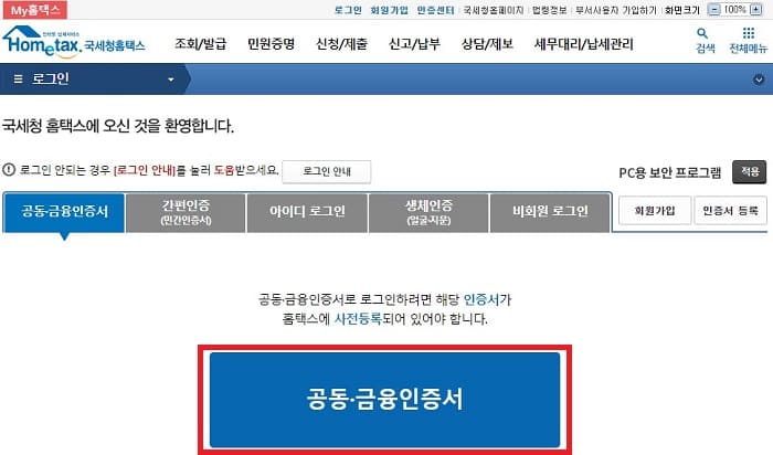 2)공동인증서 로그인하기