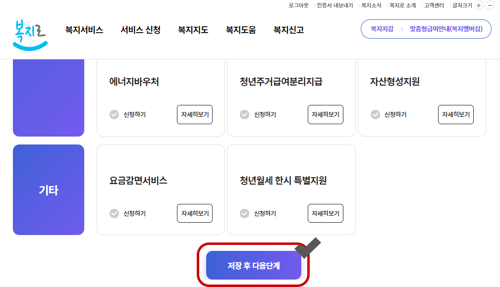 인터넷 창에 복지로 라고 검색하셔서 들어가셔도 되고 안내를 통해 들어가실 수도 있습니다.