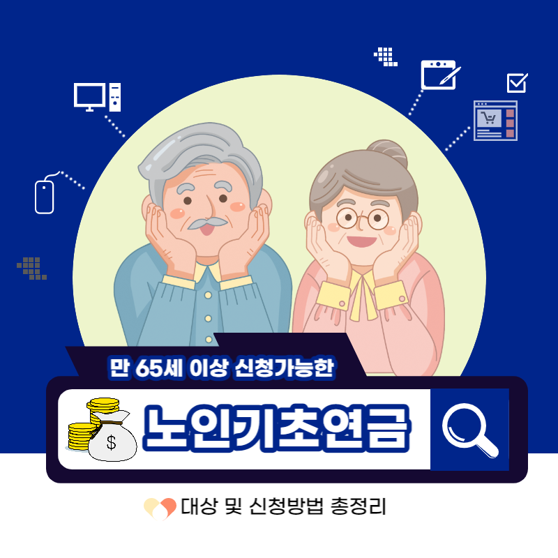 만 65세 이상 노인 중 생활이 어려운 어르신들의 생활안정과 복지증진을 목표로 매월 일정한 기초연금을 드리는 서비스입니다. 만 65세 이상인 어르신으로서 소득인정액이 매년 보건복지부장관이 정하여 고시하는 금액 이하인 사람에게 지원합니다.