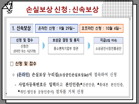 우선 신속 보상을 신청하는 방법입니다.