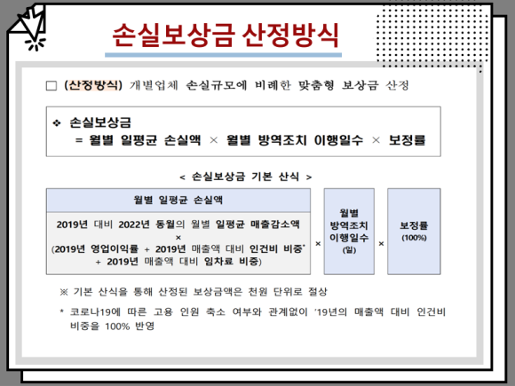 개별 기업의 손실에 비례하여 산정방식이 맞춤화된 점 참고하시기 바랍니다.