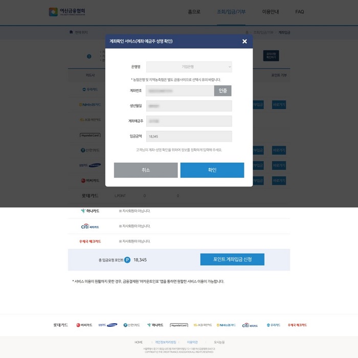카드포인트통합조회 / 계좌입금 / 기부 언제나 함께하면 행복합니다. 든든한 신뢰의 최고 파트너가 되겠습니다.