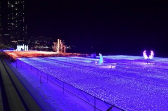 백사장에서는 바닥에 설치된 LED에서 파란 빛이 파도가 출렁이는 것처럼 보인답니다. 해운대는겨울에 와도 또 다른 매력이 가득한 곳이랍니다. 밤 12시가 되면 불빛이 전체 소등된답니다.