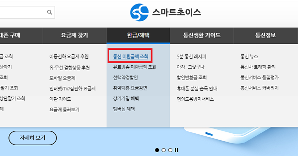 - 법인 가입자, 만14세 미만 가입자, 외국인 가입자, 가명 가입자는 스마트초이스에서는 미환급액 조회가 제한되므로 해당 통신사 고객센터로 문의하시기 바랍니다.