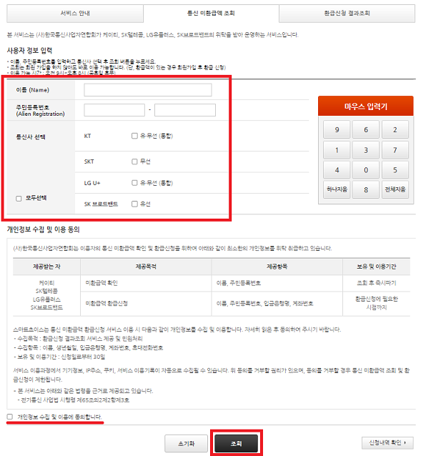 더불어, 통신비 미환급금 조회도 가능한데, 이를 통해 서비스 해지 후 발생한 과납요금 등을 돌려 받을 수 있습니다.