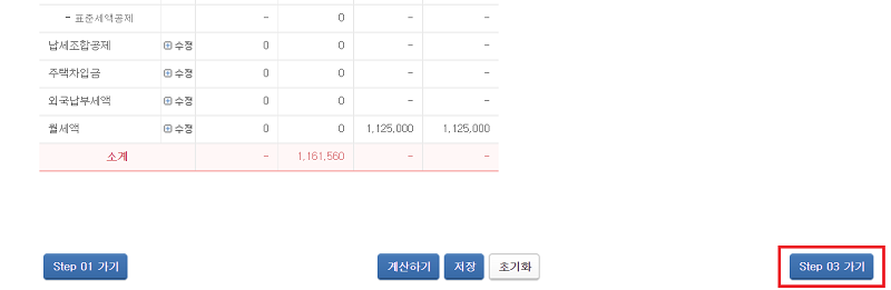 6) 그 후에 계산된 금액을 저장하기를 클릭한 뒤 Step.02 가기를 클릭합니다.