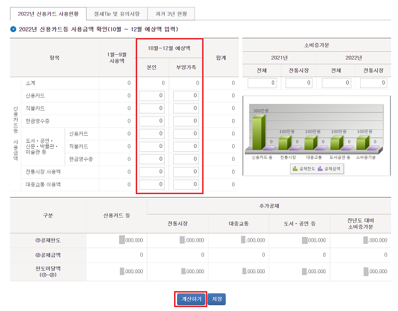 5)2022년 신용카드 사용현황에서 10월~12월 예상액을 예측하여 입력해줍니다.