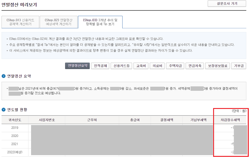 4. 3개년 추이 및 항목별 절세 Tip 보기