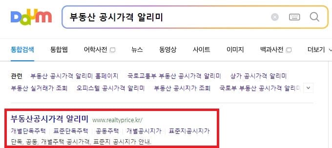 1) 포털에 부동산 공시가격 알리미를 검색하여 접속합니다.
