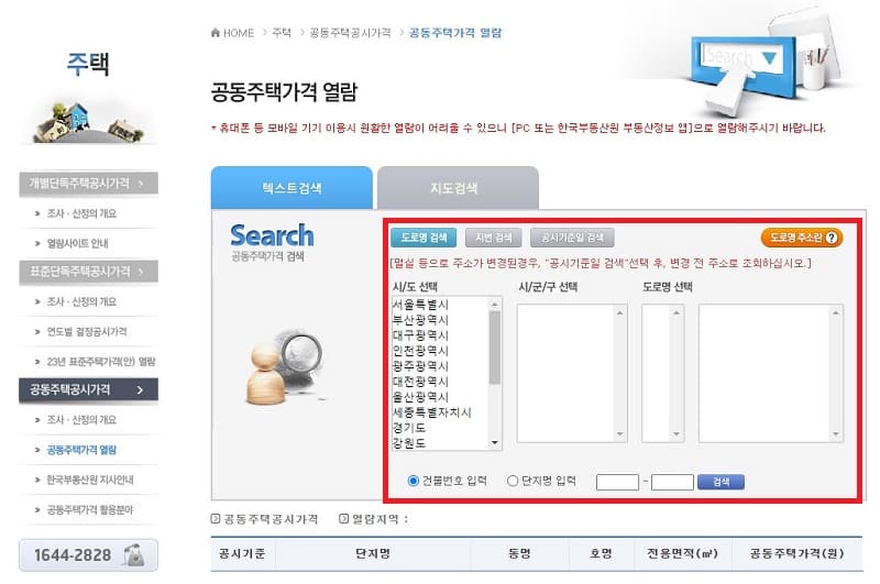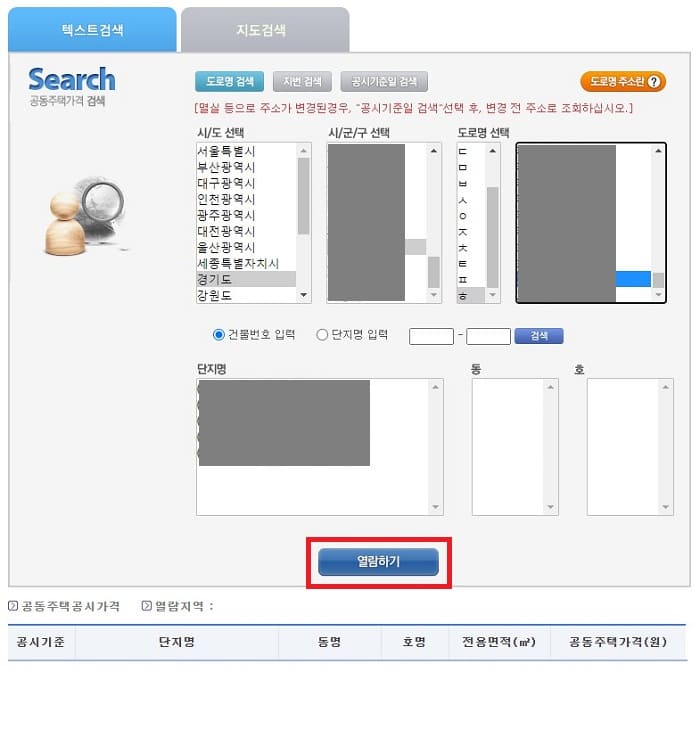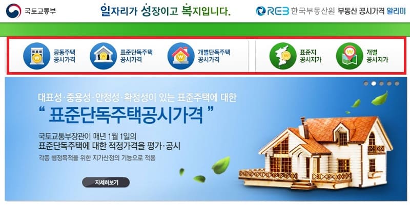 2) 홈페이지에서 원하는 공시가격을 클릭합니다.