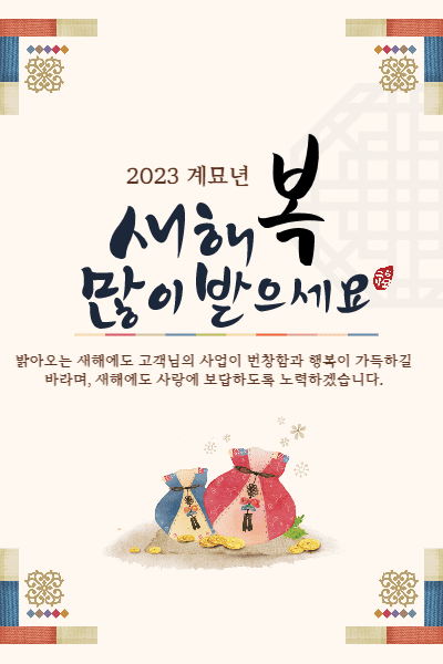 16번 이미지와 17번 이미지는 동일한데 문구가 조금 다릅니다. 행복한 설 연휴와 행복한 새해이니 원하는 문구로 받아가시길 바랍니다.