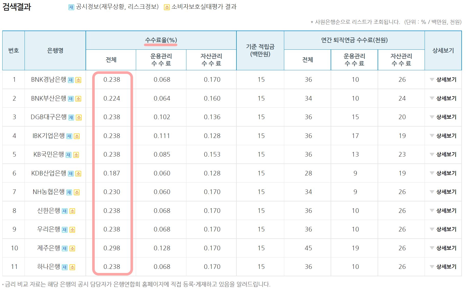 - 은행 IRP 퇴직연금 수수료 조회 : 은행연합회 소비자포털 에서 가능